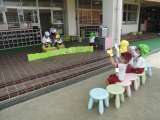 テラスに素敵なステージができました。 好きなダンスや体操をしたり、段ボール太鼓を...