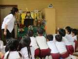 5歳児ゆり組の子どもたちが、五月人形を飾りました。 「兜、かっこいいなあ!」と目...