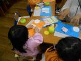 4歳児さくら組、5歳児ゆり組では、こいのぼりの製作をしていました。 うろこの模様...