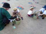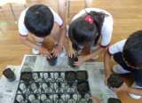 5歳児がフウセンカズラの種まきをしました。 種の模様を見て「白いハートがかいてる...