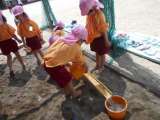 4歳児さくら組が泥遊びをしていました。 「流しそうめんごっこ」と楽しんでいた子ど...