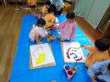 金曜日の様子です 3歳児ひよこ組は初めての絵の具遊びをしました。筆の持ち方や、筆...