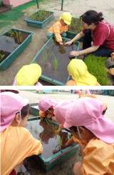 皆で土づくりをした田んぼにイネを植えました。 「美味しいお米がたくさんできるとい...