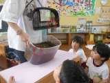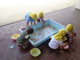 蒸し暑い日だったので、3歳児はテラスで水遊びをしました。 水鉄砲は最初は難しく、...