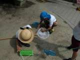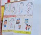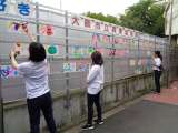 今日はみんなが帰った後、先生達で幼稚園の外の壁面に絵の具の絵を飾りました。 子...
