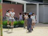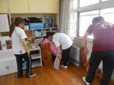 夏休みの間、教職員全員で幼稚園内を掃除しています。 保育室の床はワックスがけをし...