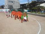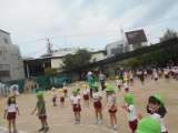 全園児集まって、運動会ごっこをしました。 かけっこをしたり、演技をしたりしている...