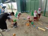 今日は午前中、曇っていたので比較的過ごしやすく、久しぶりに園庭で遊びました。砂場...