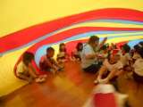 5歳児がパラバルーンをしていると、3歳児が遊びに来ました。 パラバルーンが膨らん...