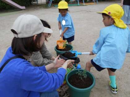 お家の人と一緒に夏野菜を植えました。
