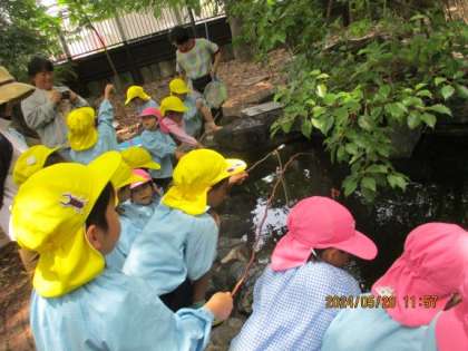 全園児で、えのもとの森へザリガニ釣りに出かけました。