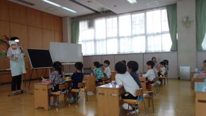 歯科衛生士の方が子どもたちに歯みがき指導をしました。