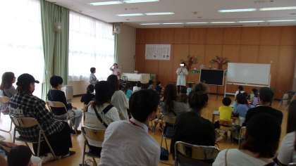 パネルシアターを使ってむし歯菌の話をしてくれたり、丁寧な歯みがきの仕方を教えてくれたりしました。歯ブラシの持ち方から磨く場所や磨く時の手の力まで知ることができました。