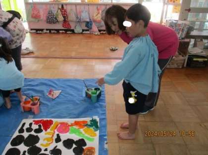 色々な色の絵の具を保育室に準備すると、