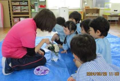 雨の日も楽しいね 公開日 2024/05/31 更新日 2024/05/31 幼稚園日記 雨が降って園庭で遊ぶことができない時もあります。 そんな天気の悪い日に、4歳児の子どもたちは、 雨がたくさん降っている様子を見て “あまつぶちゃん”を作っていました。 ハサミでいろいろな形のあまつぶちゃんを切っていましたよ。 また、幼稚園のお庭で見つけたアジサイの花をみんなで観察して、 お部屋の中にも、アジサイの花を作って飾っていました。 いいね(0)