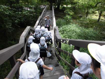 藤田邸跡公園へ行ってきました。 公開日 2024/06/06 更新日 2024/06/06 幼稚園日記 今年度初めて、電車に乗って園外保育へ行ってきました。電車の乗り方など約束をしていざ出発です。 5歳児は4歳児に優しく声をかけながら仲良く手を繋いで歩きました。 藤田邸跡公園に到着すると、タケノコがお出迎えしてくれました! 「つるつるしてるよ」「ながーーーーい」と到着早々楽しんでいました。 水分補給をしたら、藤田邸跡公園を探検です。 いいね(0)