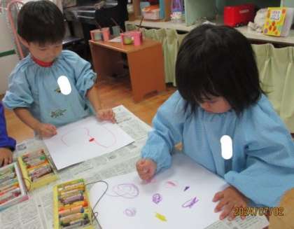 そして、大きな画用紙のコップにクレパスで果物をかき、