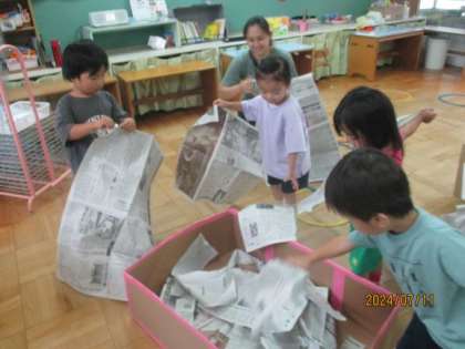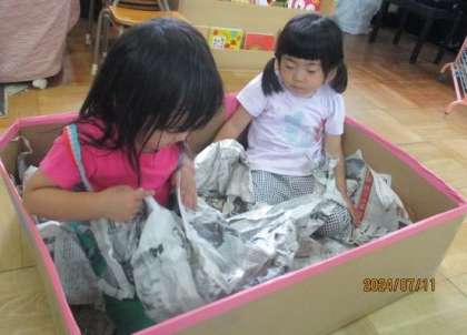 みんなで存分に遊んだ後、大きな段ボールを出すと