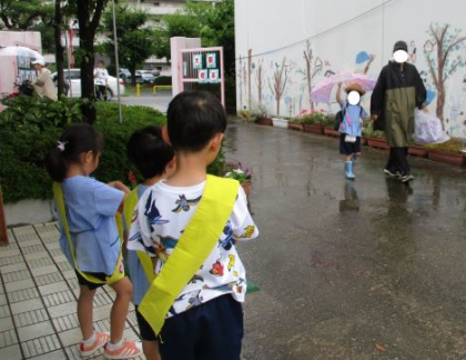 気持ちのいい朝の挨拶 公開日 2024/07/11 更新日 2024/07/11 幼稚園日記 今日から5歳児の「あいさつっこ」が始まりました。 朝、みんなの登園時に「おはようございます。」と気持ちのいい挨拶が聞こえてきていました。挨拶を返してくれると嬉しい気持ちになりますね。 明日は私もやりたい!とみんな張り切っています。 門で、あいさつっこをしています。可愛い挨拶が聞こえてくると思いますので、負けない挨拶を返してみてください。 いいね(0)