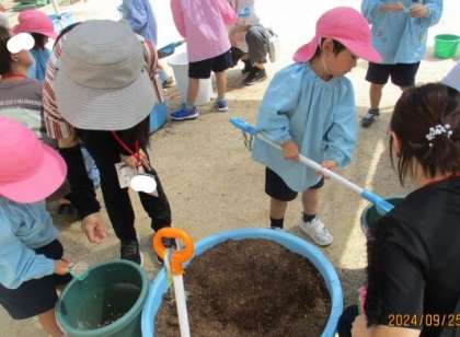 お家の人と一緒に冬野菜を植えました。