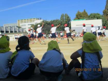 榎本小学校に、運動会の練習の様子を見学しにいきました。