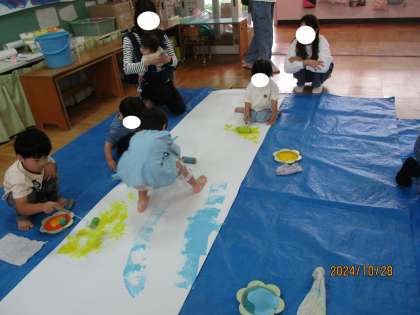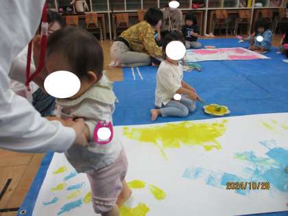 手や足に絵の具を付けてペタペタと遊ぶ子もいて、可愛かったです。