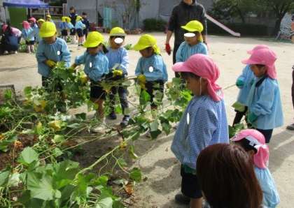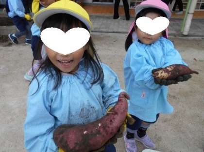 幼稚園で大切に育てていたサツマイモを収穫しました。