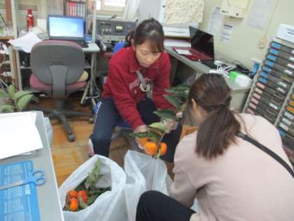 教職員で枝を切って準備をしています。