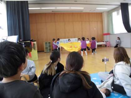先日の生活発表会で行った、歌・合奏・劇を見てもらいました。
