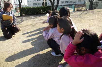 子どもたちには避難訓練の前に知らせ、地震の時の避難の仕方を