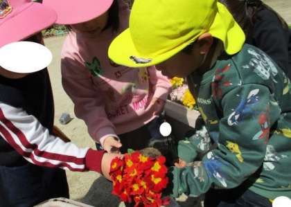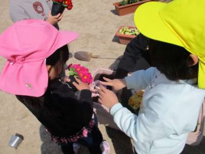 園庭のプランターに植え替えました。