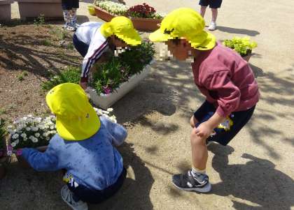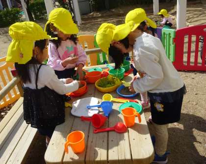 今日はとても良いお天気で、子どもたちも大喜びで遊んでいました。菜の花や桜の花びらを使って、ごちそうをつくったり、ダンゴムシ探しをしたり、好きな遊びを伸び伸びと楽しむ姿が見られました。また、外でいっぱい遊びましょうね。