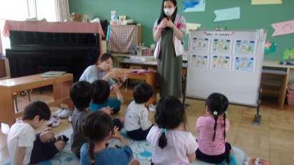 4月の保健指導(4・5歳) 公開日 2025/04/22 更新日 2025/04/22 保健室から 4月は手洗いの話をしました。 ♪ビオレあわあわ手洗いのうた♪にでてくる6つのポーズを知らせ、手洗いの順番や洗い残し、すすぎ残しが多いところを伝えました。指導後、手洗い場では養護教諭や担任と一緒に、歌を歌いながら手洗いをする子どもたちの姿が見られました。 いいね(0)