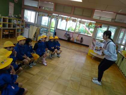 健康診断をする前に身体のどこをみてもらうか子どもたちに事前指導をしています。