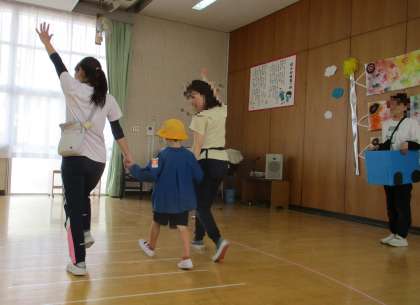 今年度、初めての「あるこうデー」をしました。先生たちから、交通ルールについて寸劇で知らせると、子どもたちも保護者の方もよく話を聞いてくれていましたよ。最後に『ストップ体操』をして、おうちの方と一緒に交通ルールを守って降園する姿が見られました。次のあるこうデーもご協力お願いします。