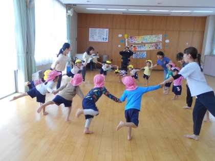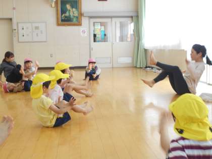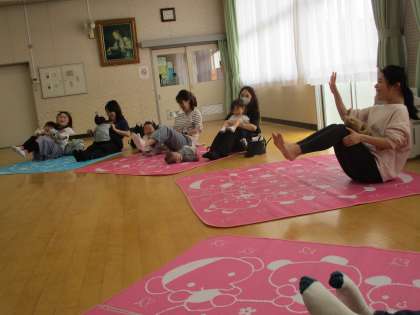 なかよしタイムでは、地域のヨガの先生が保護者向けと、幼児向けに
