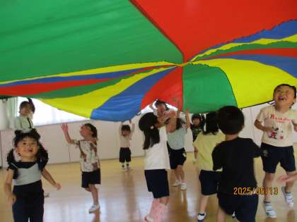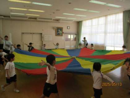 パラバルーンをやったよ 公開日 2025/05/14 更新日 2025/05/14 幼稚園日記 今日は4歳児5歳児と、はじめてみんなでパラバルーンをしました。 5歳児は去年の経験もあるので、「こんな技もあるよね」 と色々なことをやりたい様子です。 大好きなバナナくんたいそう♪の曲に合わせてパラバルーンをし、 はじめてとは思えないほど技が決まっていました。 これからも4歳児、5歳児と色々なことに挑戦していきたいです。 いいね(0)