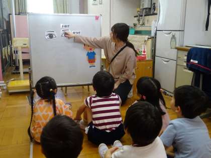 目のお話(5歳児) 公開日 2025/05/14 更新日 2025/05/14 保健室から 5月の発育測定時は、目について話をしました。 まゆげやまつげ、まぶたのそれぞれの役割を知らせたり、実際に自分のを触ってみたりして目の大切さを伝えました。 また、目が悪くなるとどんな見え方なのか視覚物を使って子どもたちに見せました。その後の視力検査も上手にできている姿が見られました。 いいね(0)