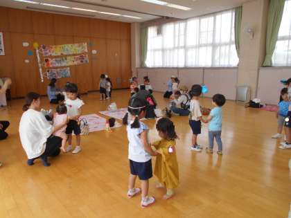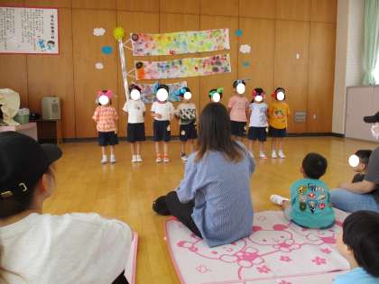 なかよしタイムでは、5歳児の歌をきいたり触れ合ったりして