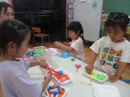 なにつくろう 公開日 2025/06/11 更新日 2025/06/11 幼稚園日記 4歳児は、つくることに夢中です。 はさみを使って素材を切ったり、貼ったりしていきます。 すると、 「これはトマト」 「ロボットの手みたいになったよ」 「消防車できたー」「どうやってつくったの?」 友だちに聞いてつくってみる姿もあります。 毎日遊びの中で自然といろいろな経験をしています。 いいね(0)