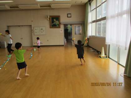 みんなで遊戯室に泳がせに行きました。