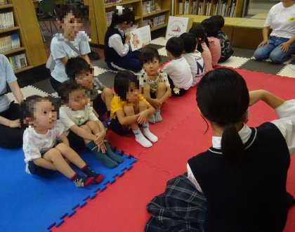 図書室では高校生のお兄さん、お姉さんに絵本を読んでもらったり、一緒に好きな絵本を選んで読んだりすることを楽しみました。絵本を読んでもらえて嬉しかったですね。