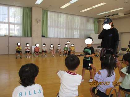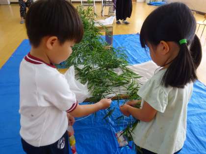 誕生日会・七夕遊びをしたよ 公開日 2025/07/07 更新日 2025/07/07 幼稚園日記 今日は朝からみんなで笹飾りをして七夕遊びの準備です。 誕生児は入場の時に七夕にお供えする物を持って歩き 興味津々なみんなにも見えるように歩いてくれました。 元気に自己紹介をしたり、4歳児も5歳児もかわいい 出し物をし、楽しい誕生会になりました。 七夕遊びでは、先生たちが織姫たちに変身して 七夕の劇をしました。 みんなの願いがお空に届くといいですね。 いいね(0)