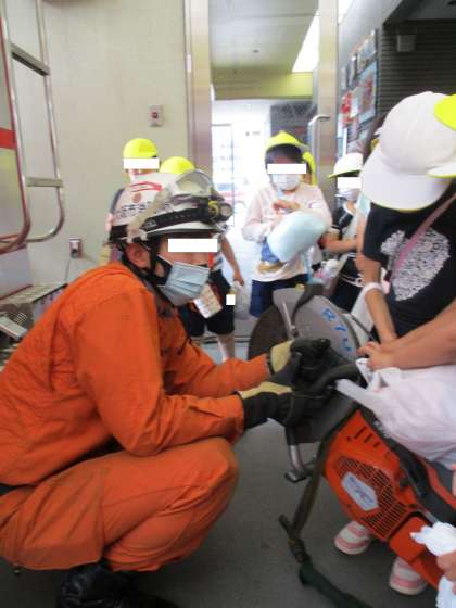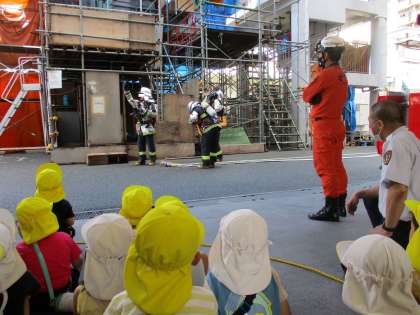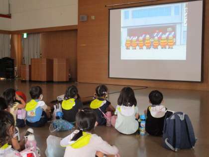 5歳児が鶴見消防署を探検しました。消防自動車や消防訓練に興味津々で消防士の方の話もよく話を聞いていました。最後は防災ビデオも見せて頂きました。行き帰りの道も頑張って歩く姿に成長を感じました。