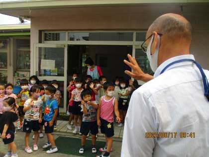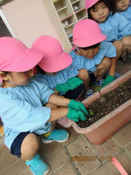 鶴見区役所の方が幼稚園にマリーゴールドの苗を届けてくださいました。これは鶴見区の「種から育てる地域の花づくり活動」でボランティアの方々が大切に育ててくださったものです。「お花の赤ちゃんだ」「どんな花が咲くかな」「大きくなあれ」と子どもたちが植えました。