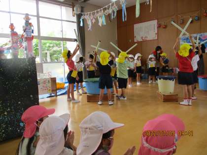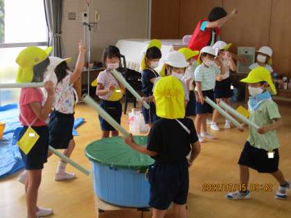 夏祭り楽しかったよ 公開日 2022/07/05 更新日 2022/07/05 幼稚園日記 今日は子どもたちと教職員で夏祭りをしました。オープニングは5歳児の樽太鼓です。音楽に合わせて太鼓の音も揃っています。 いいね(0)