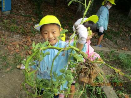 じゃがいも堀りをしました! 公開日 2022/07/08 更新日 2022/07/08 幼稚園日記 春にえのもとの森の畑に植えた、じゃがいもを掘りに行きました。 「じゃがいものお顔が見えてる!」「みんな引っ張るの手伝って」と言って、じゃがいものツルを友達と力を合わせて引っ張っていました。 「どれぐらいとれたかなあ」と数えていくと…なんと180個以上ありました! 「すごいなあ!」「もも組さんにもあげたい」と大喜びの子どもたちでした。 いいね(0)
