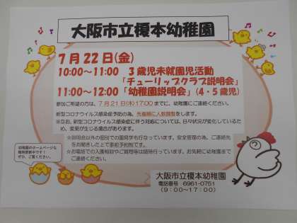 説明会について 公開日 2022/07/14 更新日 2022/07/14 お知らせ 下記の通り、チューリップクラブ(3歳児未就園児活動)と幼稚園説明会を実施します。是非、ご参加ください。 いいね(0)