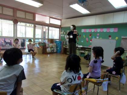 鶴見区4歳児訪問事業 公開日 2022/08/29 更新日 2022/08/29 幼稚園日記 今日は「鶴見区4歳児訪問事業」で区役所の方が来られました。大型絵本の読み聞かせや模型を使って歯の磨き方を教えてくださいました。子どもたちも落ち着いてお話を聞いていました。 いいね(0)