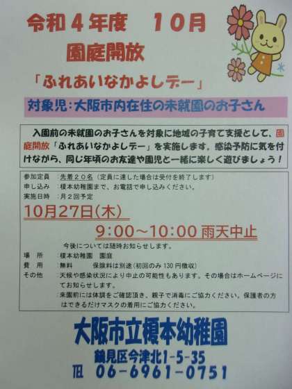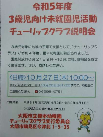 10月「園庭開放」と「チューリップクラブ説明会」のお知らせ